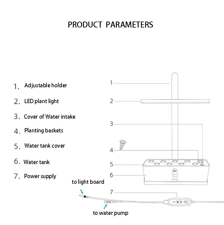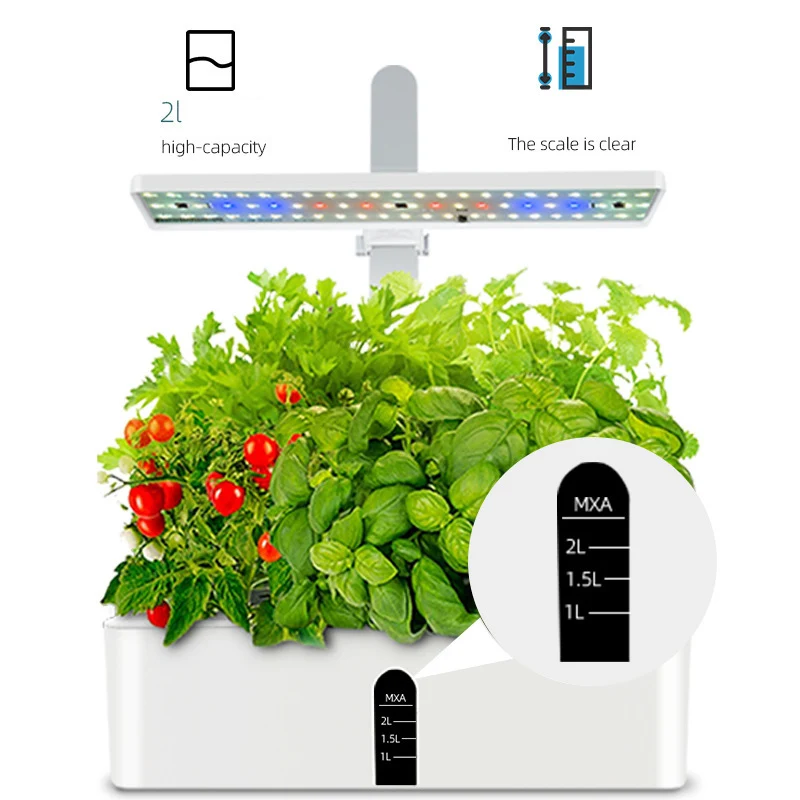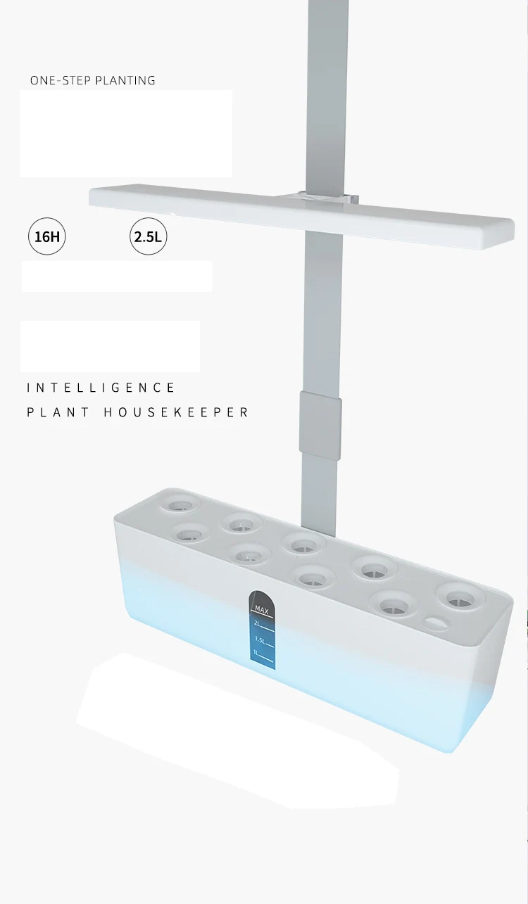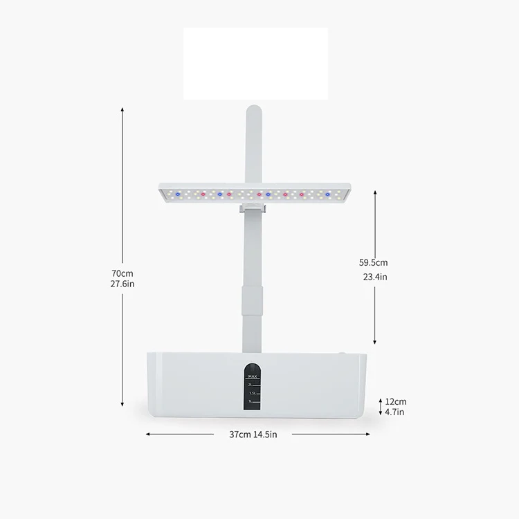 The system operates seamlessly with its user-friendly touch control interface. The integrated LED light board simulates natural sunlight, gradually increasing brightness to promote healthy plant development. With a built-in smart timer, the pump and light cycle automatically, ensuring that your plants receive the right amount of water and light without the need for constant monitoring. This innovative planter is not only practical but also designed with aesthetics in mind, featuring a sleek white finish that complements any decor.