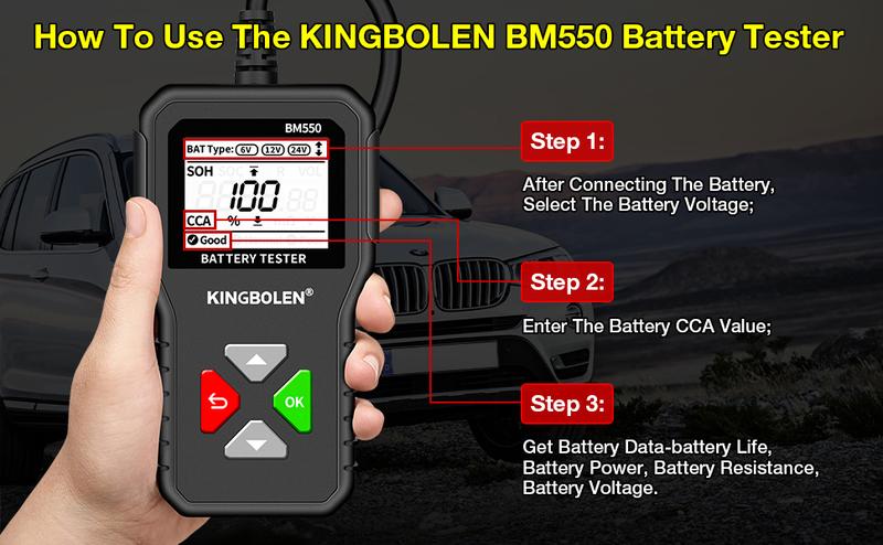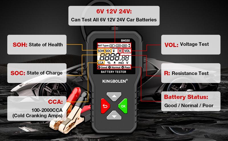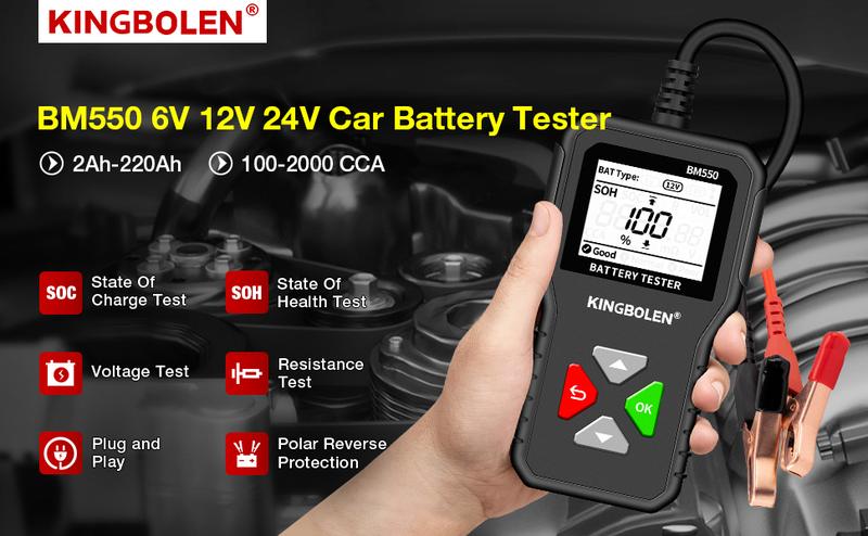 KINGBOLEN BM550 Automotive Battery Tester 6V 12V 24V Car Truck Motorcycles Boats Vehicle Battery Analyzer 100-2000 CCA