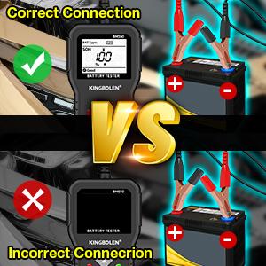 The tester features Reverse Connection Protection. If you reverse the wires, it will not work, preventing internal circuit burning. This ensures the protection of the equipment and long-term use of the car battery. If the clip is not properly clamped, the screen will flicker.