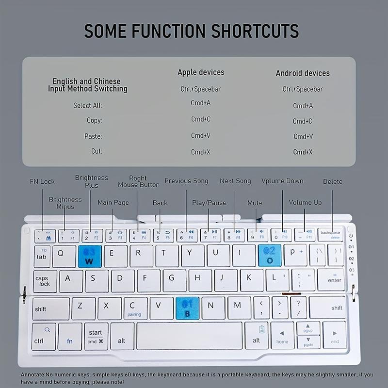 Mini Wireless Keyboard Super Mini Wireless Keyboard - Rechargeable, Foldable Design, Suitable for Android/Windows Tablets and Smartphones, Supports Simultaneous Connection to 3 Devices